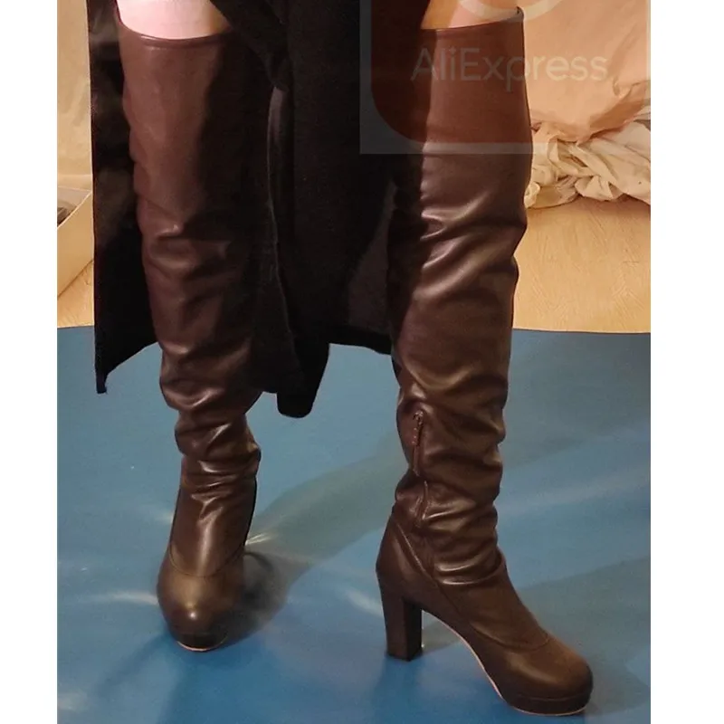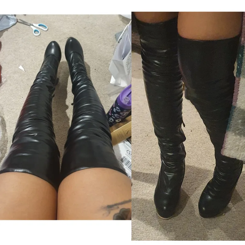 Black Women'S Thigh High Boots Platform Sexy Soft Stretch Over-The-Knee Boot High Heels Designer Long Shoes Lady Large Size 48